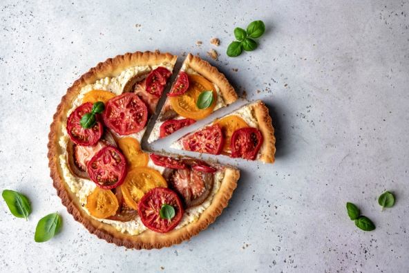 Ljeto je godišnje doba koje nas iz tjedna u tjedan veseli obiljem voća i povrća koje nam nudi. Omiljeno ljetno domaće povrće su i rajčice koje dospijevaju u raznim vrstama koje se razlikuju po veličinu, obliku, boji kože ali i mesnatog dijela te naravno i po okusu. Ljubitelji rajčica znaju da će kroz ljeto biti u prilici uživati u brojnim jelima od rajčica a s poesebnom se pažnjom priprema ova pita. Dobar tek!