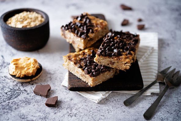 Ove briljantne pločice od zobenih pahuljica, banana, kikiriki maslaca i tamne čokolade poslužit će kao doručak, snack i desert. Priprema i pečenje traju otprilike pola sata, a u njima možete uživati tijekom cijelog tjedna.