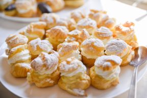 Za tijesto: U loncu pomiješajte vodu, maslac i sol. Kuhajte dok se maslac ne otopi i sastojci sjedine. Dodajte brašno i brzo miješajte dok se ne dobije tijesto. Stavite u zdjelu i postupno dodajte jaja, cijelo vrijeme miksajući.. Ulijte tijesto u kalup za i istisnite ih na pleh obloženim papirom za pečenje. Između tijesta napravite razmak. Pecite u prethodno zagrijanoj pećnici na 230°C oko 10 minuta, zatim smanjite temperaturu na 200°C i pecite još 10 minuta. Ne otvarajte vrata pećnice za to vrijeme. Tijesto prepolovite.