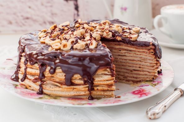 Ljubitelji palačinki bit će oduševljeni ovom tortom. Savršena je za najveće obožavatelje ovih jednostavnih zalogajčića kao i čokoladnih slastica, a idealna za druženja i rođendanske proslave.