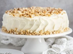 Dodajte pripremljeno brašno i lješnjake te lagano sjedinite pjenjačom. Smjesu istresite i rasporedite u kalup za pečenje.