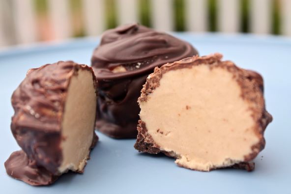 Pomiješajte grčki jogurt i Nutellu, kakao prah i javorov sirup dok se dobro ne sjedine. Smjesu podijelite na kuglice i stavite ih na tepsiju obloženu papirom za pečenje, grabite kuglice pomoću grabilice za sladoled. Zamrznite na 2 sata dok se ne stegne. Otopite tamnu čokoladu, pazite da svaki komad bude upotpunosti obložen. Vilicom izvadite i pustite da se višak čokolade ocijedi. Pospite solju i komadićima orašastih plodova. Čuvajte u zamrzivaču.
