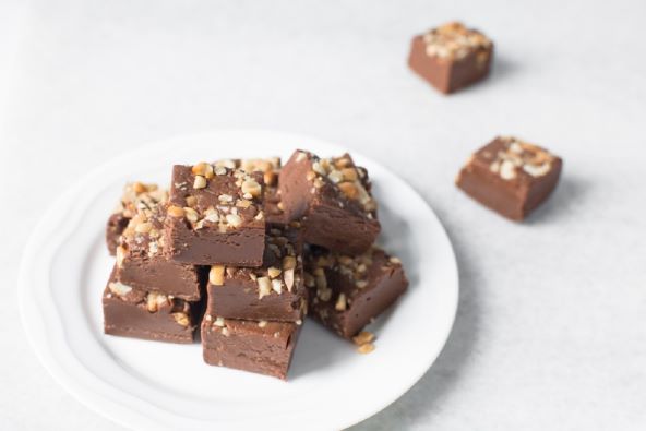 Čokoladu izlomite na kockice, pa stavite u lonac s kondenziranim mlijekom. Zagrijte na umjerenoj vatri uz neprestano miješanje dok se čokolada potpuno ne otopi i ne dobijete glatku smjesu. Dodajte nasjeckane orahe i sve dobro promiješajte. Četvrtastu tepsiju obložite papirom za pečenje i u njega izlijte dobivenu smjesu. Dobro ga poravnajte, pa stavite u zamrzivač na oko dva sata. Nakon toga narežite na kocke i poslužite. Čuvajte u hladnjaku.