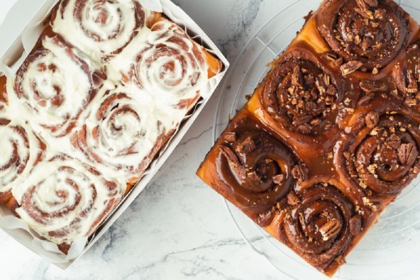 Cimet rolice slave svoj dan početkom listopada, a ako ste već krenuli s pripremom ovih mirisnih toplih zalogajčića od tijesta, pripremite kolačiće od cimet rolica s preljevom od čokolade i posipom od lješnjaka.
