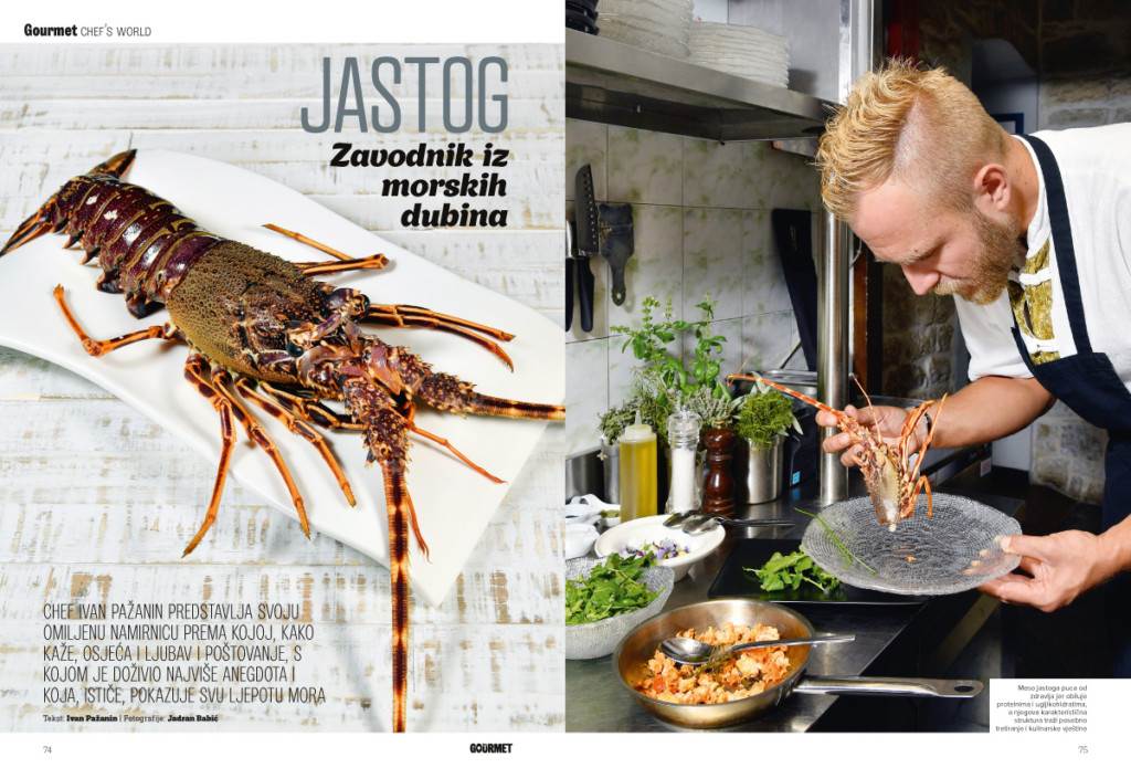 Jastog, jedna od mojih omiljenih namirnica. Reći bilo što o njemu što već nije rečeno prilično je teško. Jastog traži poštovanje i ljubav u tretiranju. Njegovo karakteristično meso puca od zdravlja jer obiluje proteinima i ugljikohidratima, njegova karakteristična tekstura zahtijeva posebno tretiranje i kulinarsko znanje da se savršenstvo okusa osjeti u nepcu kušača. Jastog, kao što je poznato, živi u dubini, gdje je more bistrije i slanije, i to mu daje tu specifičnost zbog koje je iznimno cijenjen.