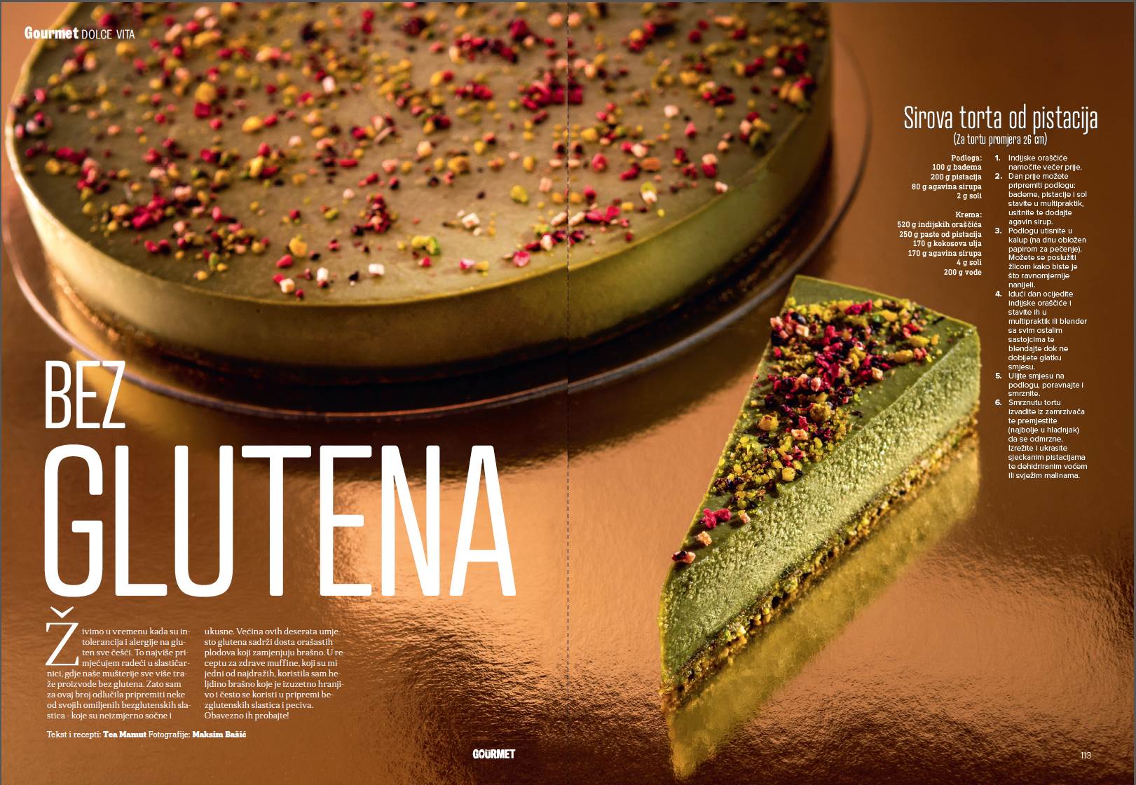 Živimo u vremenu kada su intolerancija i alergije na gluten sve češći. To najviše primjećujem radeći u slastičarnici, gdje naše mušterije sve više traže proizvode bez glutena. Zato sam za ovaj broj odlučila pripremiti neke od svojih omiljenih bezglutenskih slastica - koje su neizmjerno sočne i ukusne. Većina ovih deserata umjesto glutena sadrži dosta orašastih plodova koji zamjenjuju brašno. U receptu za zdrave muffine, koji su mi jedni od najdražih, koristila sam heljdino brašno koje je izuzetno hranjivo i često se koristi u pripremi bezglutenskih slastica i peciva.