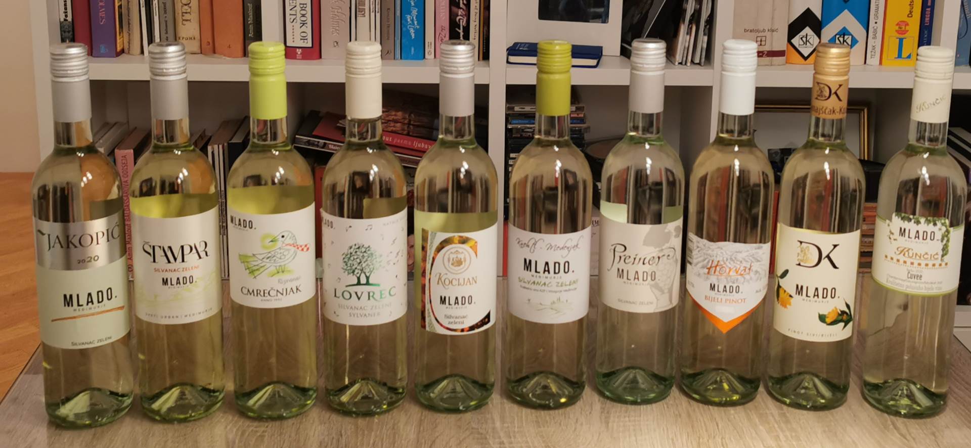Imali smo, naravno, primjerene čaše, složili redoslijed kakav se na kušanjima traži, od lakših vina prema težima te od onih nježnija mirisa prema aromatičnijim, barem koliko smo mogli pretpostaviti prema podacima s etikete. Dali smo si truda pa vina kušali više puta i uspoređivali ona koja po poznatim podacima mogu biti slična. Što se sorata tiče, šest je zelenih silvanaca, po jedan rizvanac i bijeli pinot, a tu su i mješavine bijelog i sivog pinota odnosno chardonnaya, sauvignona i žutog muškata. Alkoholi su između 11 i 12 posto, a samo na jednom piše kako je polusuho. Sudeći po okusu, takvo je još najmanje jedno od onih na čijim etiketama nema informacije o ostatku neprovrela šećera.