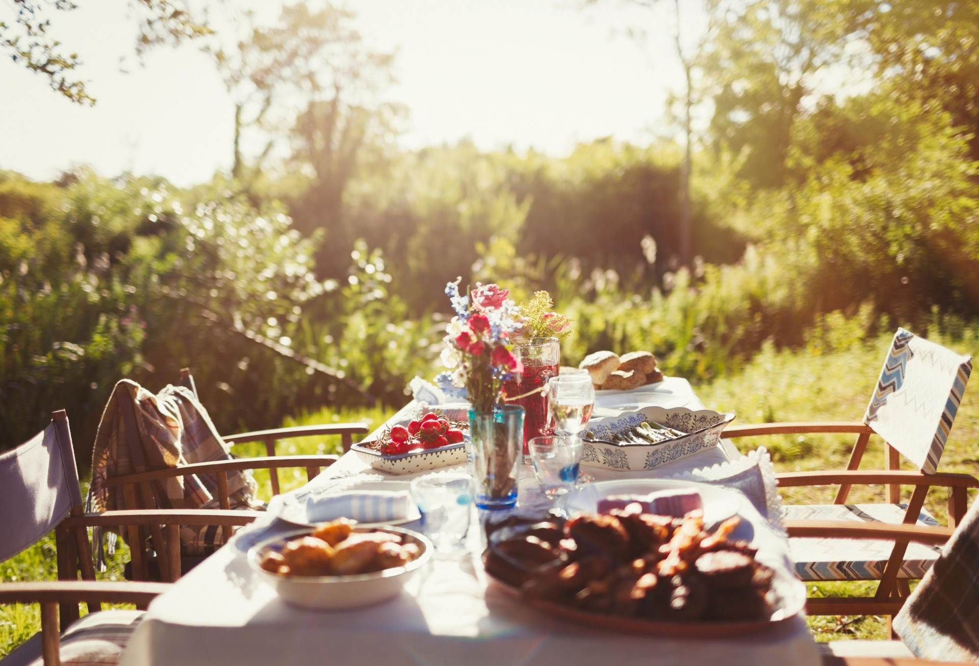 Vrtne zabave savršeno su mjesto za gurmanski provod pod vedrim nebom koji poziva na pripremu ne samo klasičnog roštilja već i zalogaja te napitaka koji odgovaraju toplijem dijelu godine te neformalnim druženjima. Prijedlozi što pripremiti su brojni, a najkraći opis dobrodošlih jela bi bio - lagano, jednostavno i s puno osvježavajućih aroma. Kanapei se opet vraćaju u modu, a uz njih se mogu kombinirati i bruskete, sushi, mini burgeri, sirne plate, salate, dipovi s nasjeckanim štapićima povrća, deserti u čašicama, sladoledni kupovi. Slobodno kombinirajte stare klasike s ponekom uzbudljivom novotarijom.