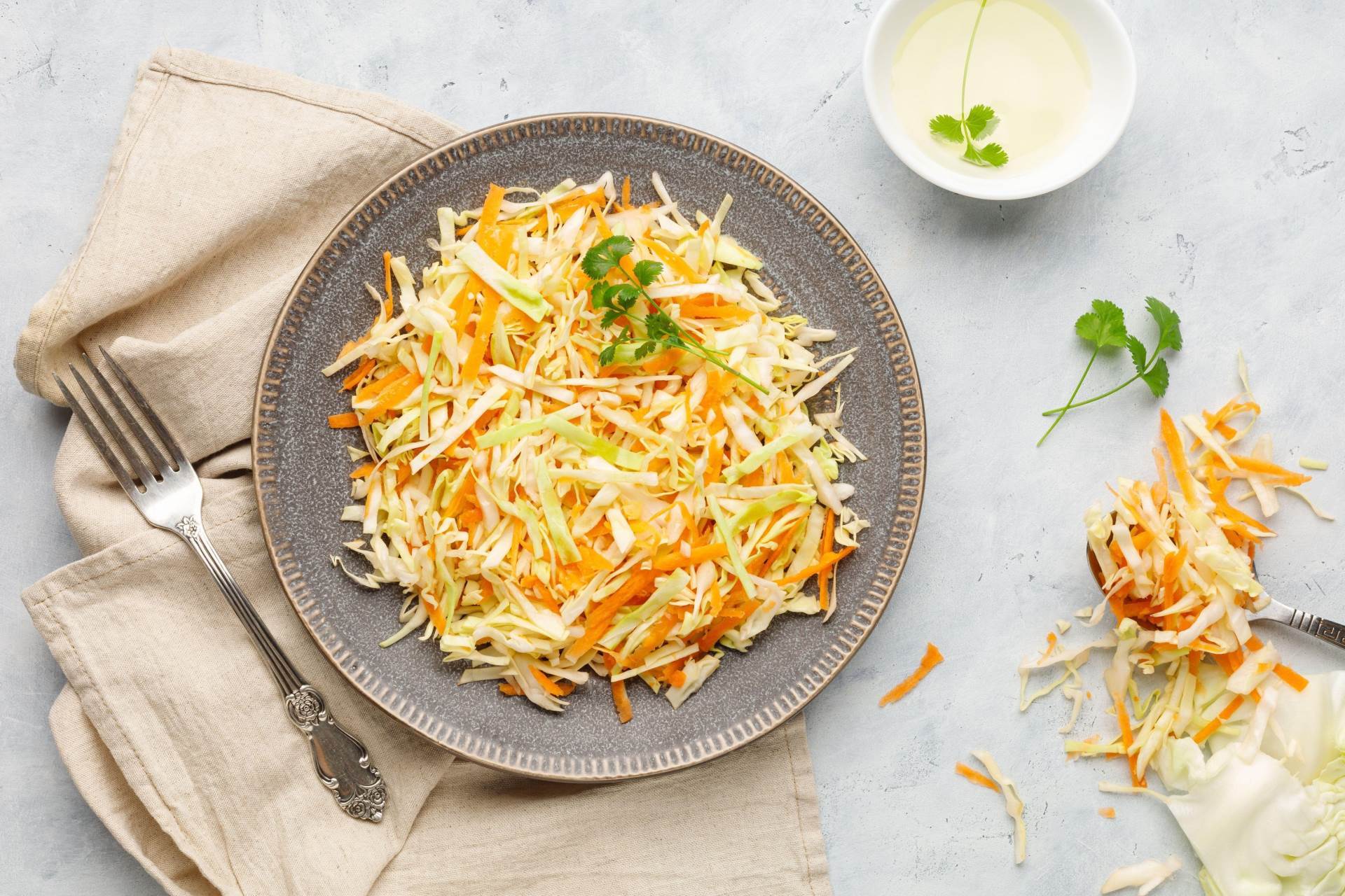 Salata, jedna riječi a toliko ideja od kojih se posebno rado vraćamo pripremi klasika među salatama - coleslaw salati. Zvijezda ove salate je svježi kupus koji u kombinaciji s mrkvom i celerom (po želji i jabukom i lukom) začinjen s preljevom pruža na svježini, sočnosti i dobrodošloj hrskavosti. Ova je salata savršeni dodatak pečenom mesu – trganoj svinjetini i piletini, burgerima, sendvičima, ali i raznim malim zalogajima. Recept za pripremu coleslaw salate sastoji se i od pripreme umaka od majoneze, vrhnja, malo senfa i soka limuna ali odlične su i kombinacije uz dodatak malo jabučnog octa i mlaćenice koja je okusno lakša od kiselog vrhnja. Dobar je i savjet pripremljenu salatu ostaviti na nekoliko sati u hladnjaku a sve kako bi se sastojci i preljev što bolje povezali. Savjet više – uz bijeli kupus slobodno dodajte i malo ljubičastog kupusa jer će svojom bojom i ovu salatu učiniti zanimljivom.