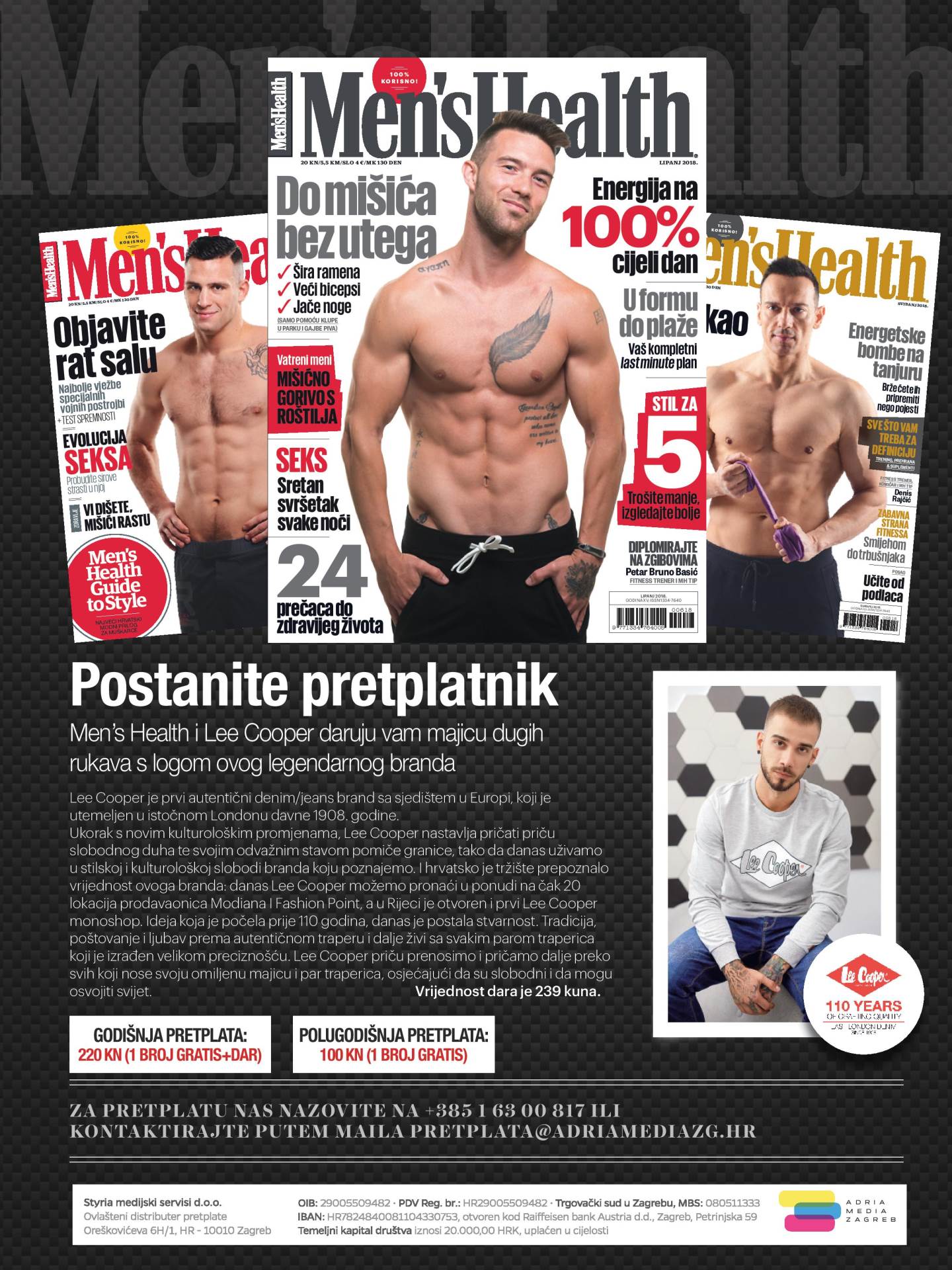 Uz kupnju godišnju preplatu na časopis Men's Health poklanjamo vam Lee Cooper majicu dugih rukava s logom ovog legendarnog branda.