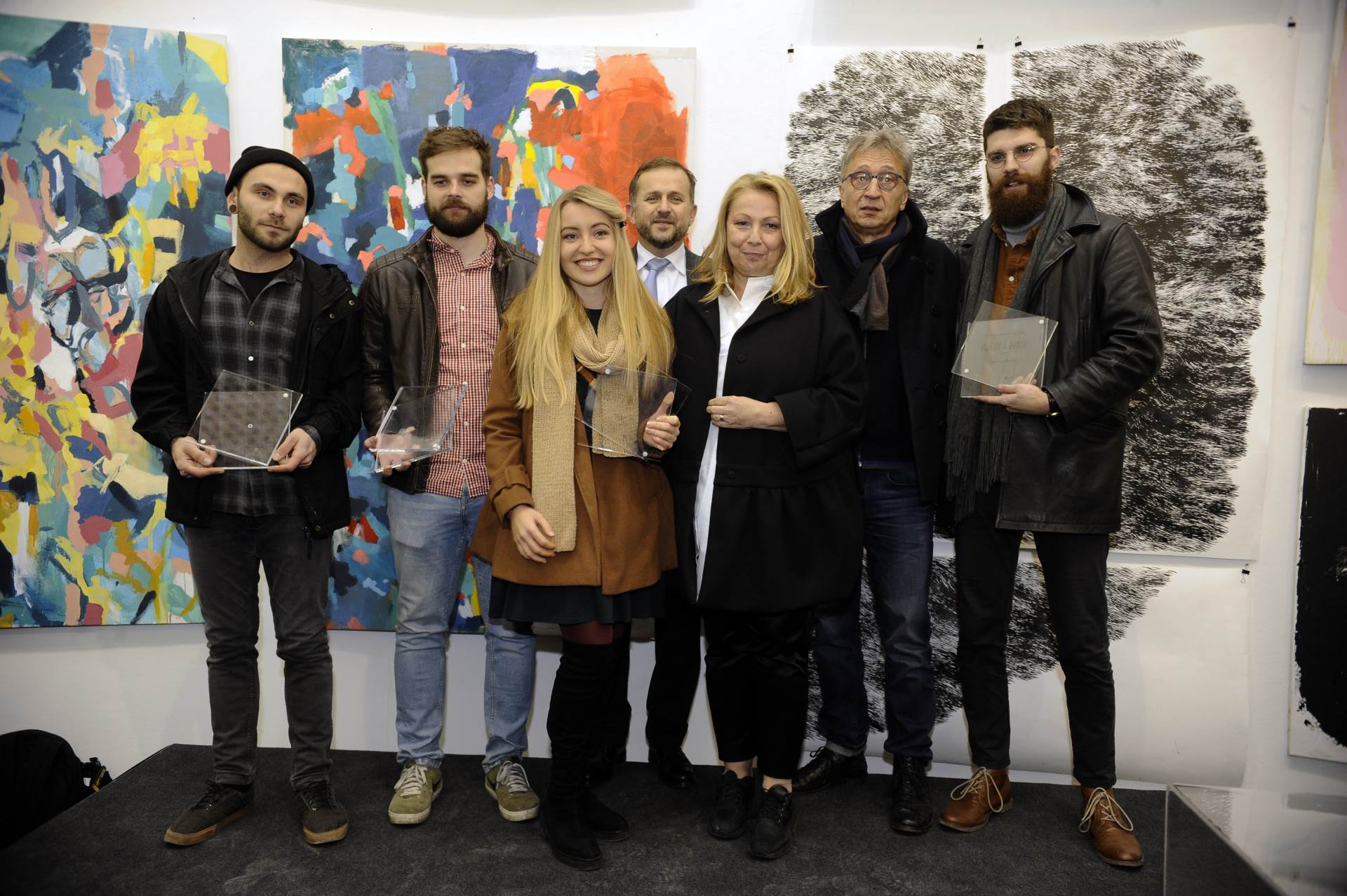 Među 40-ak mladih izlagača s likovnih akademija iz Zagreba, Osijeka, Rijeke i Širokog Brijega, žiri je plaketom nagradio Maju Gjajić, Ivicu Purgara, Darija Dmitrovića i Mateja Vukovića.
