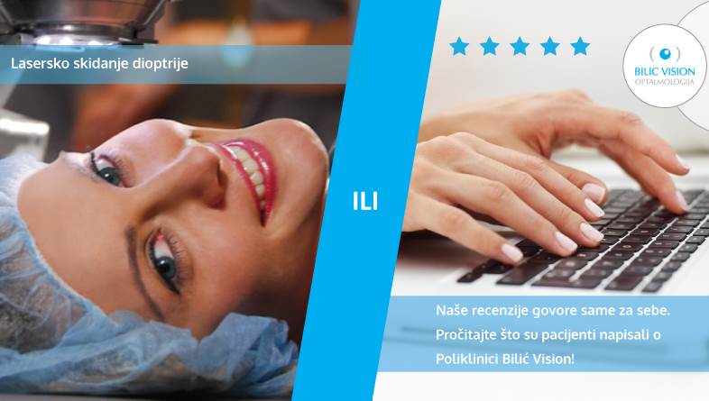 Poliklinika Bilić Vision postoji preko 20 godina i do danas joj je povjerenje dalo više od 100.000 pacijenata. Budite i vi jedan od njih i zauvijek se riješite naočala i kontaktnih leća u Poliklinici Bilić Vision. Na pregled za lasersko skidanje dioptrije naručite se još danas pozivom na 01/4678-444 ili se javite putem weba: https://bilicvision.hr/.