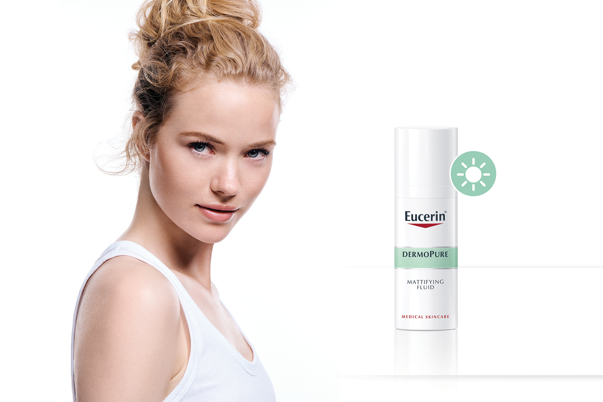 Eucerin je kreirao DERMOPURE dnevnu kremu s matirajućim učinkom koja je posebno formulirana kako bi udovoljila zahtjevima masne i aknama sklone kože. Pomaže u smanjenju akni, zaglađuje kožu i pruža osmosatni učinak protiv sjaja. Inovativna Eucerin DERMOPURE dnevna krema s matirajućim učinkom učinkovito neutralizira prištiće i mitesere te pomaže u dugoročnom kontroliranju masne i aknama sklone kože. Jedinstvena formula sa salicilnom kiselinom, licochalconom A, tehnologijom reguliranja viška sebuma i matirajućim česticama pomaže u smanjenju nečistoća i sprečava njihovo pojavljivanje, smiruje iritaciju kože i upale, smanjuje crvenilo i proizvodnju sebuma te osigurava osmosatni efekt protiv sjaja bez začepljenja pora. Svakodnevnom primjenom Eucerin DERMOPURE dnevne kreme poboljšava se opći izgled kože te smanjuju prištići i akne.