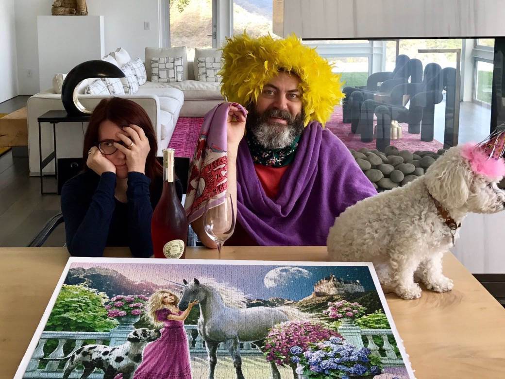 “Uvijek na odmoru ili tijekom blagdana imamo nekoliko kutija drvenih puzzli i slažemo ih na stolu u dnevnom boravku. Vrlo su zabavne i stimulirajuće”, rekao je milijarder, a voli ih i glumac Hugh Jackman. No možda najposvećeniji slagači u svijetu poznatih su glumački par Megan Mullally i Nick Offerman koji svaku dovršenu sliku proslave fotografijom.