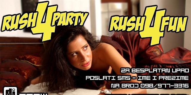 Samo za Vas 3.07. u klubu Aquarius (A2) neponovljivo vizualno i auditivno iskustvo - RUSH4Party. Party započinje u 22.00 sati i traje do ranih jutarnjih sati. Za vas selekciju glazbe radi dvojac DOCTOR SHRYNK & Lady DJ SUUB@RU... Pojedinačna karta za RUSH4Party iznosi 30kn no ukoliko se prijavite za popis možete BESPLATNO ući na party. KAKO BI SE NAŠLI NA POPISU POŠALJITE IME I PREZIME NA BROJ: 098/977-3316 Popis vrijedi do 2:00! Ali pored toga smo za Vas priredili i I HAPPY HOUR OD 22-00h. ♥ ♥ DVA PIĆA ZA CIJENU JEDNOG ♥ ♥ » »» JUICE-VODKA » »» GIN-TONIC » »» PIVE Vruću atmosferu dodatno će užariti seksi plesačice. Stoga jedino što Vam možemo još poručiti jest da očekujete jedinstvenu i prvu zabavu ovakve vrste u Hrvatskoj i nikako nemojte propustiti ovaj događaj! :-D ♥ ♥ ZA VIP REZERVACIJE STOLOVA NAZVATI: ♥ ♥ Anamaria Spinčić - 098/195-1472 MEDIJSKI POKRIVAJU: »» http://www.ispace.com.hr/ »» http://www.story.hr/ »» http://www.radiodeejay.hr/ »» http://www.antenazagreb.hr/ »» RTL EXPLOZIV »» http://www.rtl.hr/index.php?cmd=show_program&program_id=7 »» NOVATV RED CARPET »» http://redcarpet.novatv.hr/