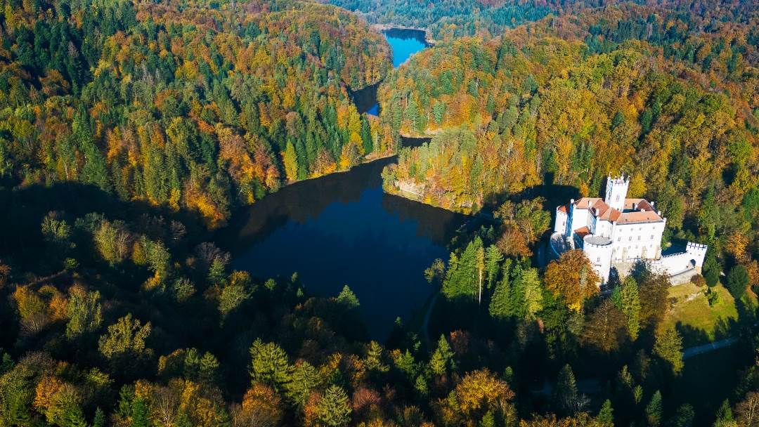 Dvorac uz koji se nalaze istoimeno umjetno jezero i bajkovita šuma nalazi se 80 kilometara od Zagreba, 40 kilometara od Varaždina, te 23 kilometra od Krapine. Osim mogućnosti posjeta muzeju, tu su i brojne staze za šetnju i opuštanje.