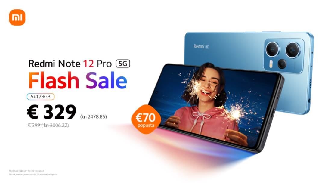 Xiaomi je prije 5 dana predstavio novu Redmi Note 12 seriju koja se sastoji od četiri uređaja: Redmi Note 12 Pro+ 5G, Redmi Note 12 Pro 5G, Redmi Note 12 5G i Redmi Note 12. Uređaji su konačno dustupni i na hrvatskom tržištu i to flash sales akcijom koja će trajati od 11. do 14.4. Redmi Note 12 Pro 5G 6+128 GB bit će snižen 70 EUR (s EUR 399 na 329 EUR), dok će Redmi Note 12 4+128 GB biti snižen 50 EUR (s EUR 249 na EUR 199). Ponuda je dostupna na linku.