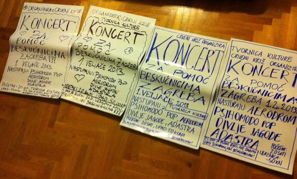 Ne propustite humanitarni koncert'Nije svejedno' koji će se večeras održati u zagrebačkoj Tvornici kulture, i to kako bi se pomoglo beskućnicima grada Zagreba. Po cijeni ulaznica od 50 kuna moći ćete uživati u glazbi grupe Adastra, te Psihomodo popa, Divljih jagoda i Aerodroma, a pred Tvornicom će biti organizirano i prikupljanje svih potrepština za beskućnike. Naime, u ovoj hhumanoj priči pristao je sudjelovati Crveni križ čiji će kombi večeras biti pred Tvornicom kako bi svi oni koji žele pomoći, donijeli donacije za beskućnike.