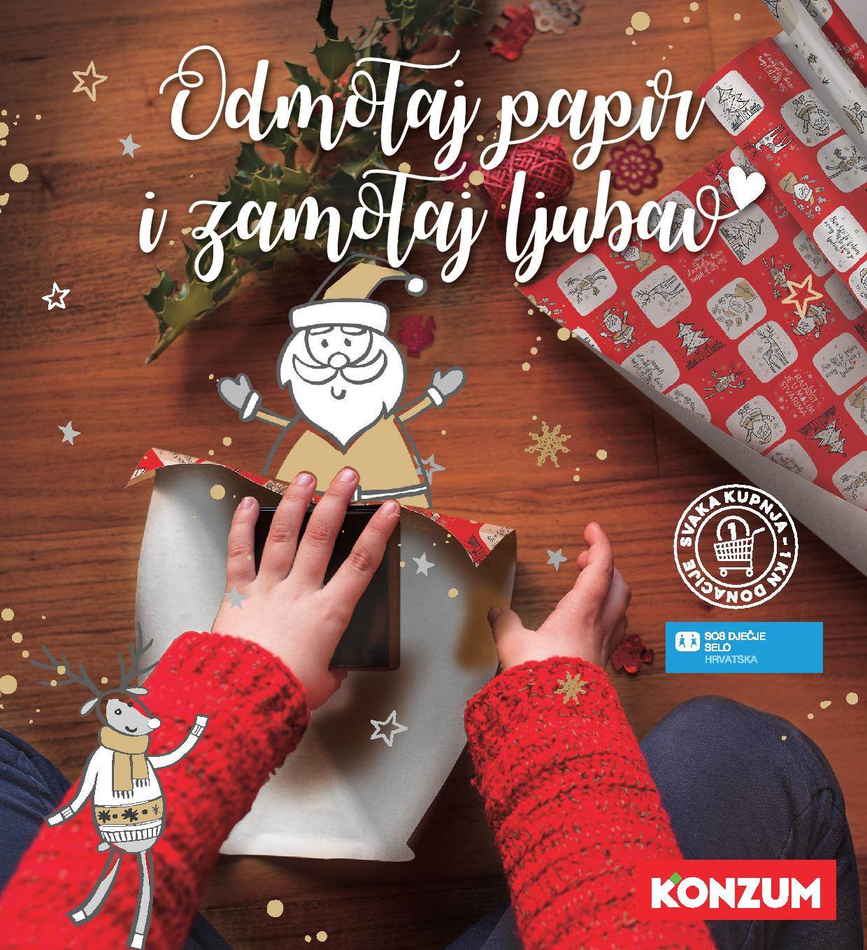 Zajedno sa svojim vjernim kupcima Konzum u blagdansko vrijeme već godinama pokazuje kako je „radost u malim stvarima“. U ovogodišnju Konzumovu tradicionalnu blagdansku humanitarnu akciju, usmjerenu na pomoć najugroženijim skupinama društva, kupci se mogu uključiti kupnjom posebno dizajniranog prigodnog ukrasnog papira, vrećica i kartica za pakiranje blagdanskih darova. Od svakog kupljenog proizvoda Konzum će jednu kunu donirati djeci u SOS Dječjem selu Hrvatska.