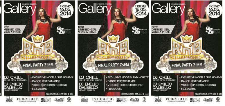 Gallery Club u petak 16.5.2014.godine organizira popularni R'nB Exclusive party koji i ovaj mjesec dolazi u Zagreb. R'n'B Exclusive u organizaciji riječke ekipe Balance Entertainment koja ovoga puta u suradnji sa ZšEM fakultetom čiji je ovo ujedno i završni party sezone najavljuje klupski RnB & Hip Hop spektakl u Galleryu. Tulum predovode riječki modeli „RnB Honeys wearing ZIGMAN“, blistave plesačice te legendarni rezident partya R'n'B Exclusive, DJ Chill (No1. Hip Hop DJ u HR) zajedno sa Dj Emilio Dalbello-m poznatim rezidentom kluba Gallery. Cijeli događaj pratiti će dečki iza objektiva koji će snimiti najbolje trenutke večeri i iznenađenja koja očekuju sve posjetitelje :) Porsche Inter Auto Jankomir (Porsche, Audi,VW, Škoda) pokrovitelj je R'n'B Exclusive partya te će u sklopu večeri ispred kluba Gallery izložiti prekrasne automobile na kojima će modeli R'n'B Honeys dočekati goste uz „photoshooting“. R'n'B EXCLUSIVE ekipa pripremila je nagradnu igru „PERFECT TIME TO SHINE“ u kojoj studentica sa najboljom haljinom osvaja auto (Audi) na vikend korištenje uz ostale nagrade iznenađenja. Kako bi nazdravili povodom kraja akademske godine, svaki rezervirani stol će dobiti bocu šampanjca Henkell Trocken ! Ovo je posljednji R'n'B Exclusive party ove sezone, a nakon toga R'n'B Exclusive ekipa seli na ljetnu turneju po Jadranu. REZERVACIJE: 099/4442444 POWERED BY: Juraj Zigman, Porsche Interauto Jankomir, GaGa Milano, Bogner Foto: Press