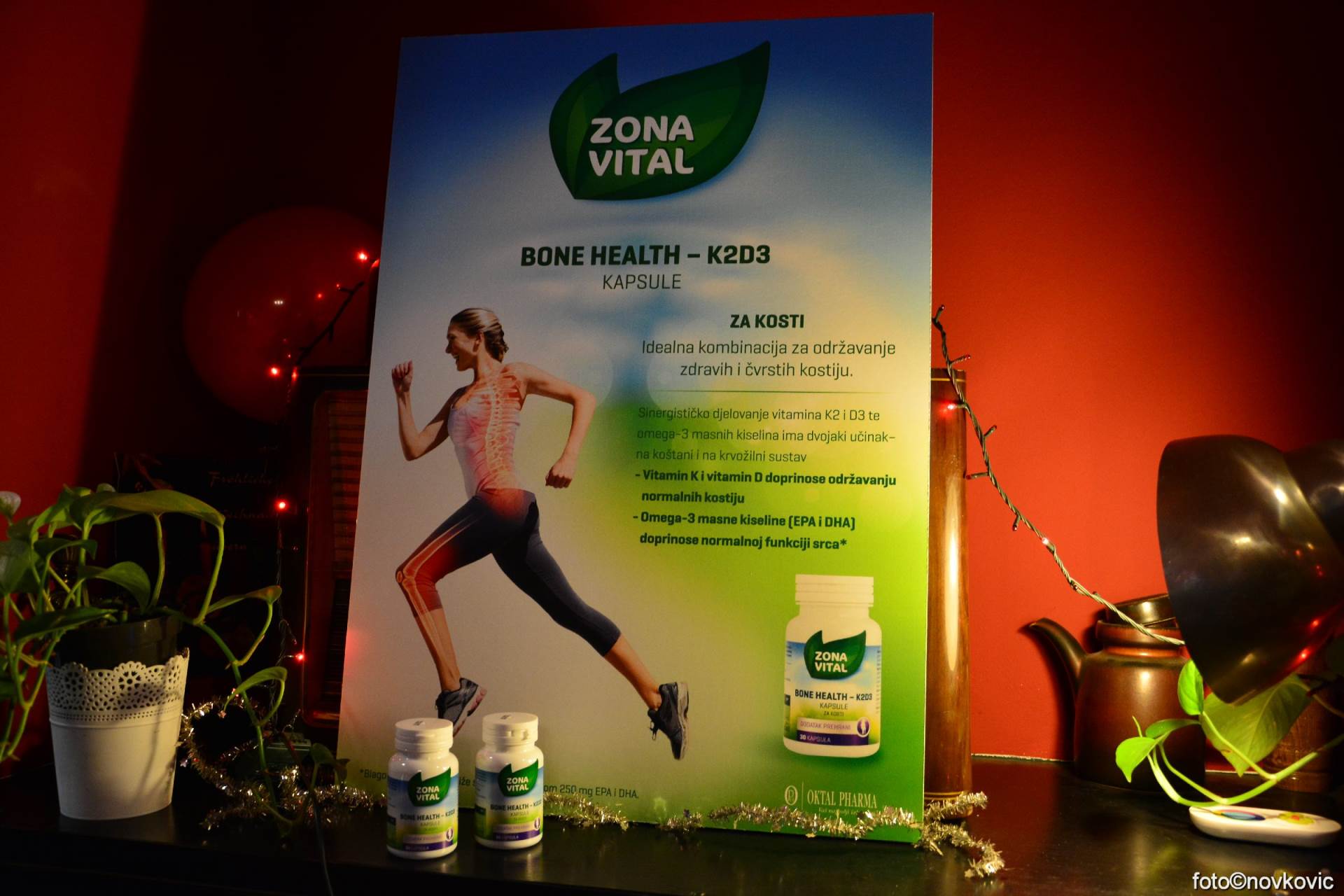 Novi proizvod u liniji Zona Vital, Bone Health – K2D3 kapsule, u prvom su redu namijenjene očuvanju zdravlja kostiju, ali i zdravlja krvožilnog sustava. Sadrže vitamin K2 i vitamin D3 koji doprinose održavanju normalnih kostiju te riblje ulje kao izvor omega–3 masnih kiselina (EPA i DHA) koje uz dnevni unos od ukupno 250 mg doprinose normalnoj funkciji srca. Vitamin D3 se u svoj aktivni oblik u tijelu pretvara djelovanjem UV zračenja na potkožno masno tkivo, dok se vitamin K2 u tijelu stvara kao metabolit djelovanjem probiotičkih bakterija u debelom crijevu.