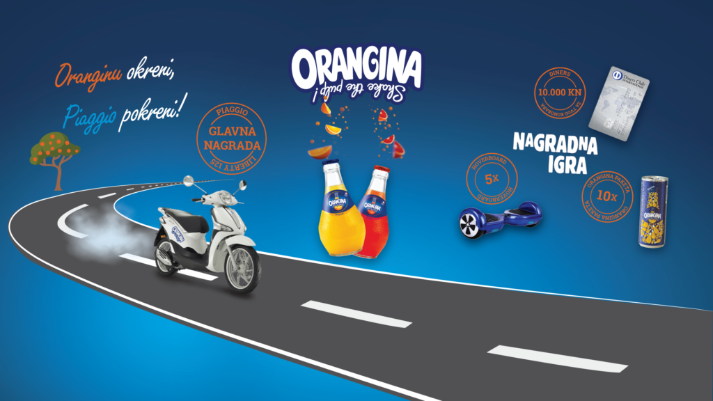 Orangina donosi više razloga za uživanje ovo ljeto! Osim pravog ljetnog osvježenja, iskoristi priliku za osvajanjem vrijednih nagrada. Osjeti jedinstveno iskustvo opuštajući se u trenutku uz eksploziju okusa, svježoj perspektivi i doživljaju prave naranče. Uživaj u soku od naranče i pravoj voćnoj pulpi, a ne propusti priliku za sudjelovanjem u velikoj Orangina nagradnoj igri! Osvoji glavnu nagradu Piaggio Liberty 125 ili neku od utješnih nagrada – Hoverboard ili paket Orangina limenki. Sudjelovanjem u nagradnoj igri daješ priliku i svom konobaru za osvajanjem vrijednog iznosa na Diners potrošačkoj kartici. Sve što trebate napraviti je: - naručiti Oranginu u kafiću - potražiti nagradni kod na grlu bočice - uzeti svoj mobitel i odsurfati ovdje.