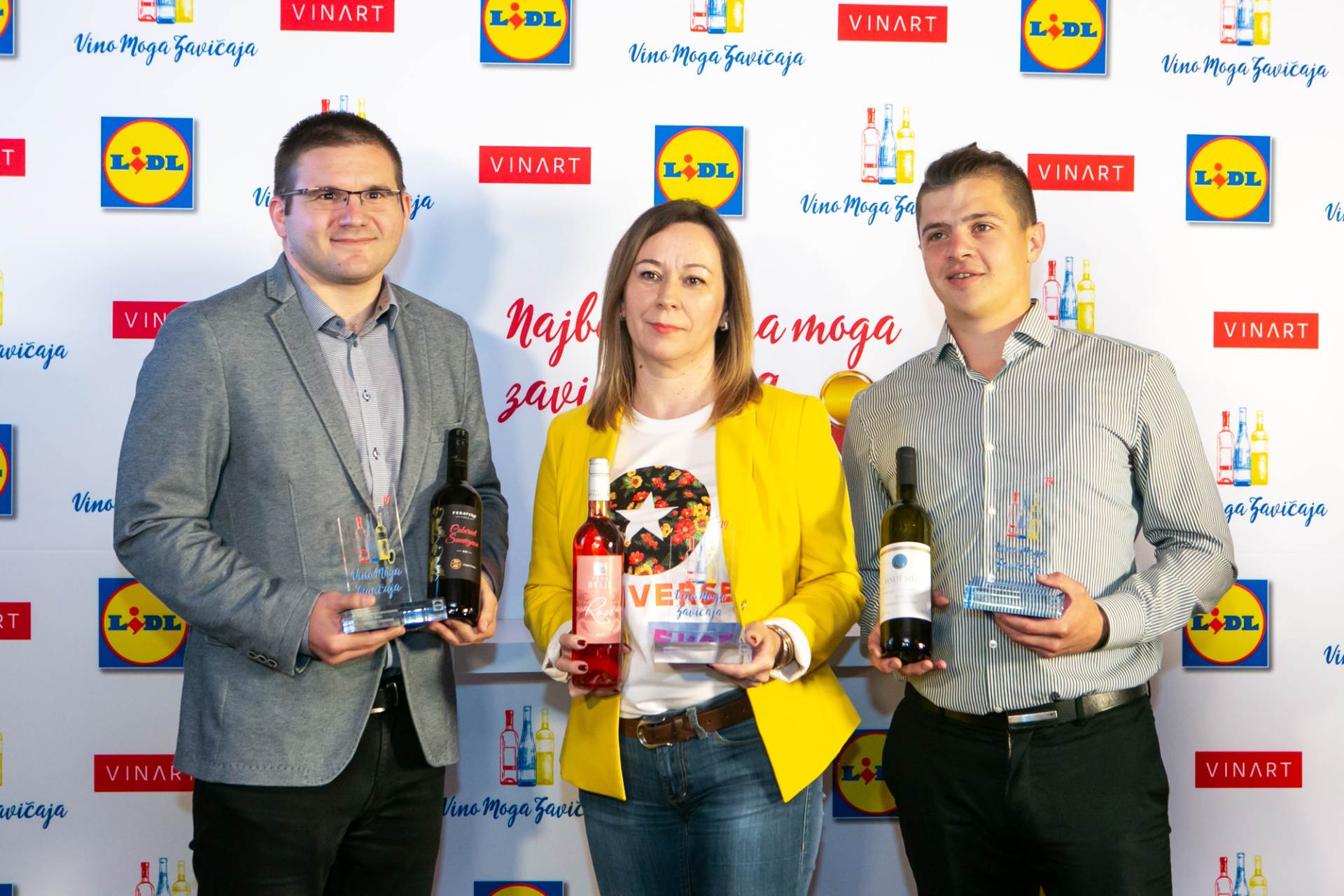 Ova vina naći će se na policama svih 97 Lidlovih trgovina u Hrvatskoj od 3. lipnja, po izuzetno pristupačnim cijenama. Na svečanom proglašenju pobjednika natječaja „Vino moga zavičaja“ u vinskom baru Bornstein, predstavnici Lidla Hrvatska i tvrtke Vinart obratili su se okupljenima i uručili nagradne statue predstavnicima pobjedničkih vinarija – članu Uprave Luki Vrgi iz Vinarije Feravino, Hrvoju Čobankoviću, enologu Vinarije Čobanković te Suzani Zovko, glavnoj enologinji Vina Belje.