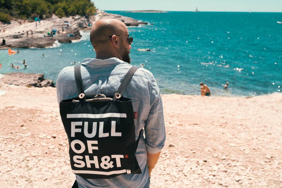 - ruksak ‘FULL OF SH&T’ za sve one stvari koje inače nosite u rukama ili nagurate po džepovima, u rasponu od iznimno važnih do posve beskorisnih;