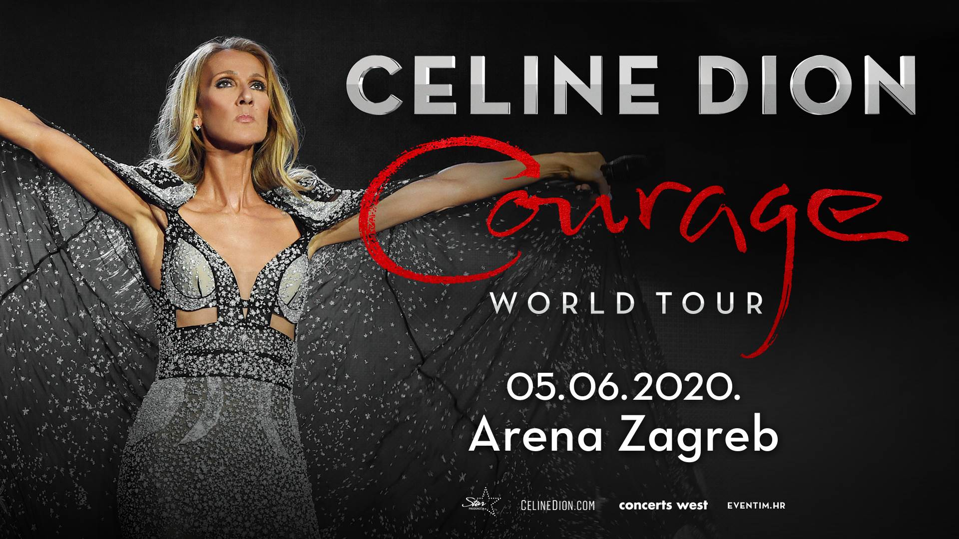 Jedna od najpoznatijih i najcjenjenijih zvijezda u povijesti pop glazbe, Celine Dion, 05. lipnja 2020. godine dolazi u Arenu Zagreb! Zagrebački koncert u organizaciji Star produkcije, dio je velike svjetske turneje na kojoj će promovirati svoje najnovije studijsko izdanje (“Courage”), a koja je započela 18. rujna u Quebecu. COURAGE WORLD TOUR uključivat će više od 100 gradova diljem svijeta, a za produkciju na najvećem svjetskom nivou, uz Star produkciju, zadužen će biti i Concerts West / AEG Presents. Europski dio turneje započet će 23. svibnja 2020. godine u Lodzu u Poljskoj, a osim brojnih gradova u Velikoj Britaniji i Njemačkoj, ova velika glazbena diva posjetit će i razveseliti svoje obožavatelje u Belgiji, Švicarskoj, Nizozemskoj, Austriji, Francuskoj, Italiji, Finskoj, Švedskoj, Danskoj, ali i po prvi puta u Hrvatskoj te na Malti i Cipru.