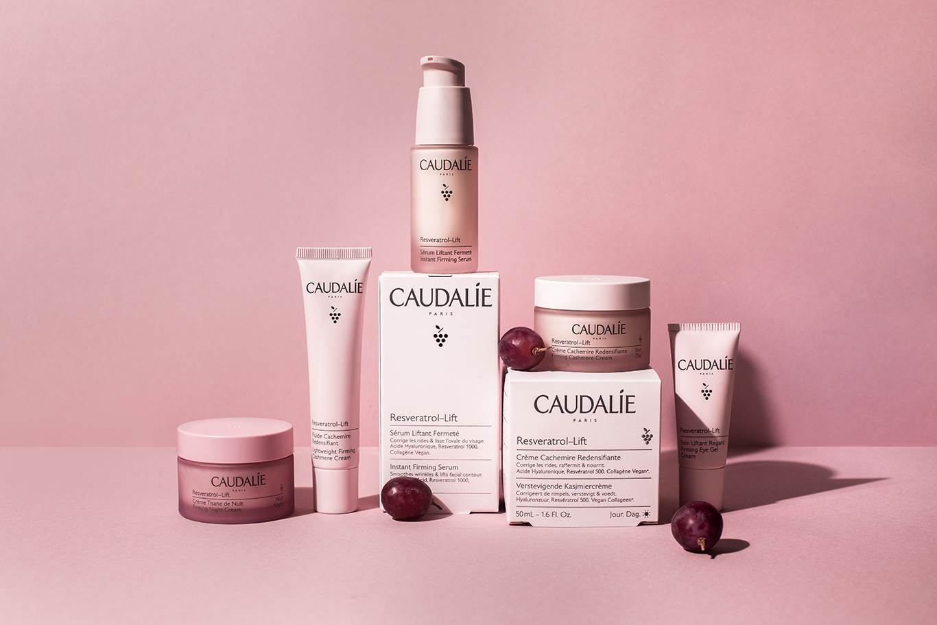 Samim time naša koža postaje 95% zaglađenija. U procesu sjedinjenja prethodno navedenih sastojaka nastala je Caudalie Resveratrol-Lift linija koja obuhvaća Instant Firming Serum, Firming Cashmere Cream, Lightweight Firming Cashmere Cream, Firming Night Cream i Firming Eye Gel Cream. Cjelokupna linija ostavlja kožu mekom, ugodnom na dodir, te ju ne masti. Svaka krema meka je kao kašmir za kožu te dodatno sprječava i djeluje prirodno protiv znakova starenja. Kreme su osmišljenje tako da pružaju lagan i osvježavajuć osjećaj na koži, a njihova tekstura maslaca pripomaže dubokoj obnovi.Linija je dizajnirana u zero waste pakiranju koje se u potpunosti može reciklirati.