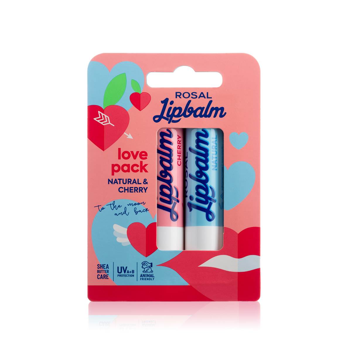 Rosal Natural, popularni "plavi" balzam, obogaćen je prirodnim uljima i vitaminima, ugodan je na usnama te je neutralne boje i okusa, savršen za njegove usne. Rosal Cherry svojom hranjivom teksturom oporavlja usne, pruža izvrsnu njegu, ali i daje neodoljivo sočnu boju i aromu višnje njenim usnama. Love Pack stvoren je za ljubav!