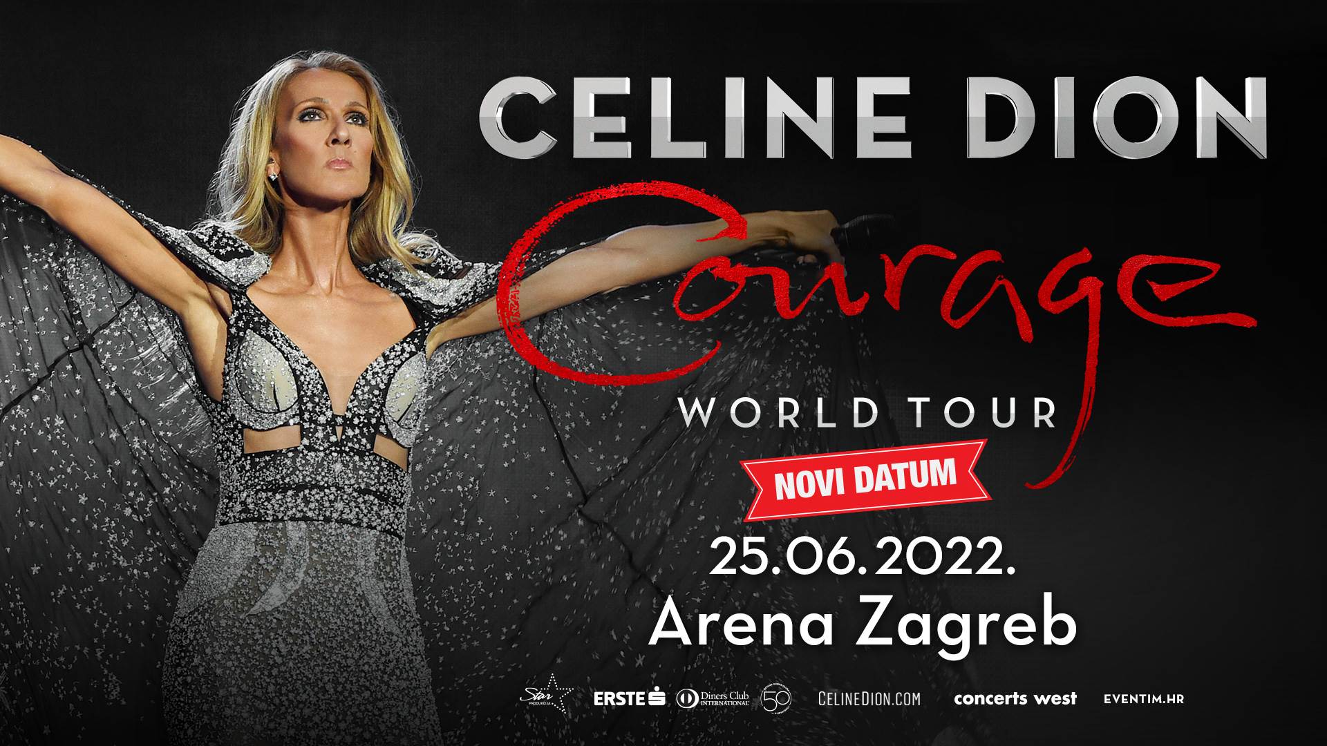 Uz duboko žaljenje, a zbog i dalje vrlo aktualne pandemije COVID-19 i restrikcija vezanih uz održavanje javnih događanja, Celine Dion primorana je odgoditi prvi dio europskog djela turneje “Courage”. Europski dio turneje tako će započeti 25. svibnja 2022. u Birminghamu, a točno mjesec kasnije, 25. lipnja 2022., Celine Dion nastupit će u zagrebačkoj Areni. Za produkciju zagrebačkog koncerta, uz Star produkciju, zadužen je i Concerts West / AEG Presents.