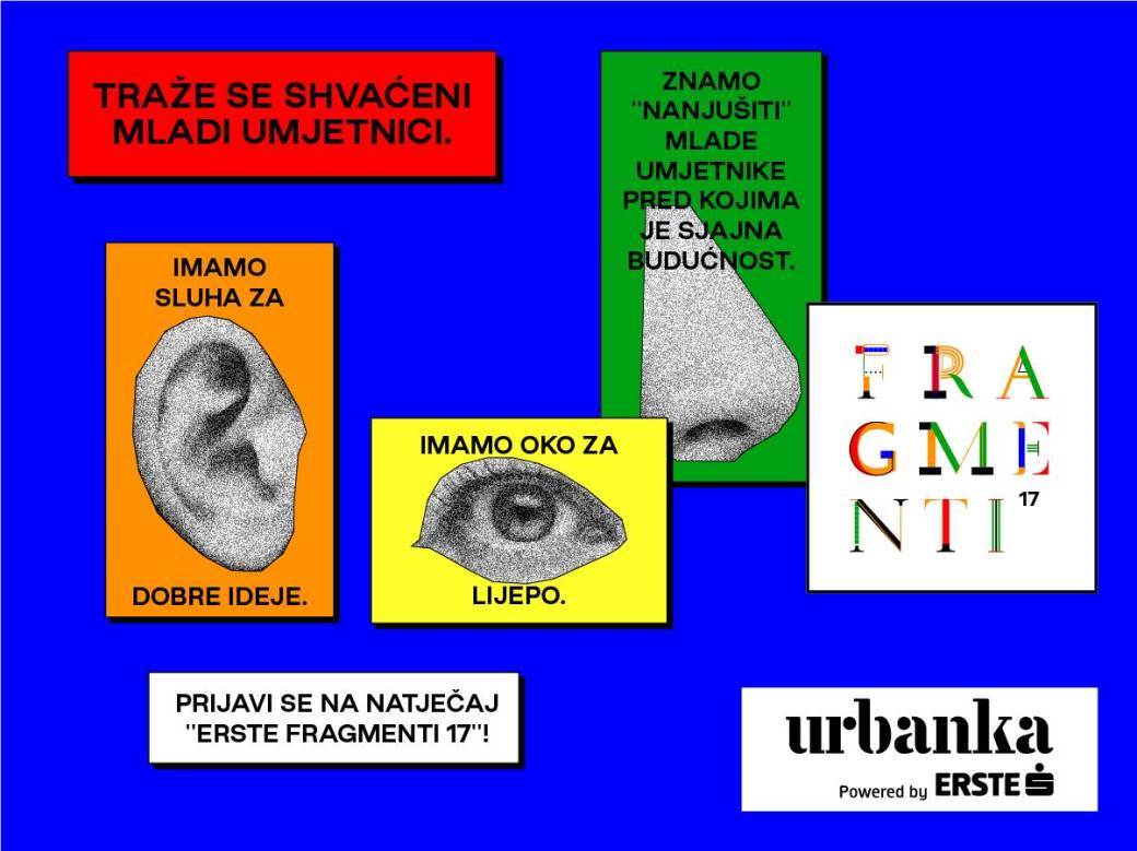 Erste banka i urbanokulturna platforma Urbanka i ove godine otvaraju prozor u svijet mladim umjetnicama i umjetnicima. Zato svi oni mladi i neafirmirani umjetnici i umjetnice u dobi do 30 godina kojima su u pandemijskoj godini uskraćene mnoge prilike, u sklopu natječaja „Erste fragmenti 17“ dobit će novu šansu da izlože, predstave i prodaju svoje radove, kao što će studentice i studenti likovnih akademija moći dobiti stipendiju koja će im olakšati studij. Erste fragmenti 17 otvoreni su za otkup skulptura, slika, grafika i instalacija, novomedijskih i digitalnih instalacija, kao i hibridnih umjetničkih formi, uz dodatnu novčanu nagradu za najbolji rad te organizaciju samostalne izložbe autoru ili autorici pobjedničkog rada. Osim toga, fragmentaši će dobiti priliku predstaviti i dodatne radove koji će u rujnu 2021. godine biti ponuđeni na prodaju posjetiteljima zajedničke izložbe u zagrebačkoj Laubi.