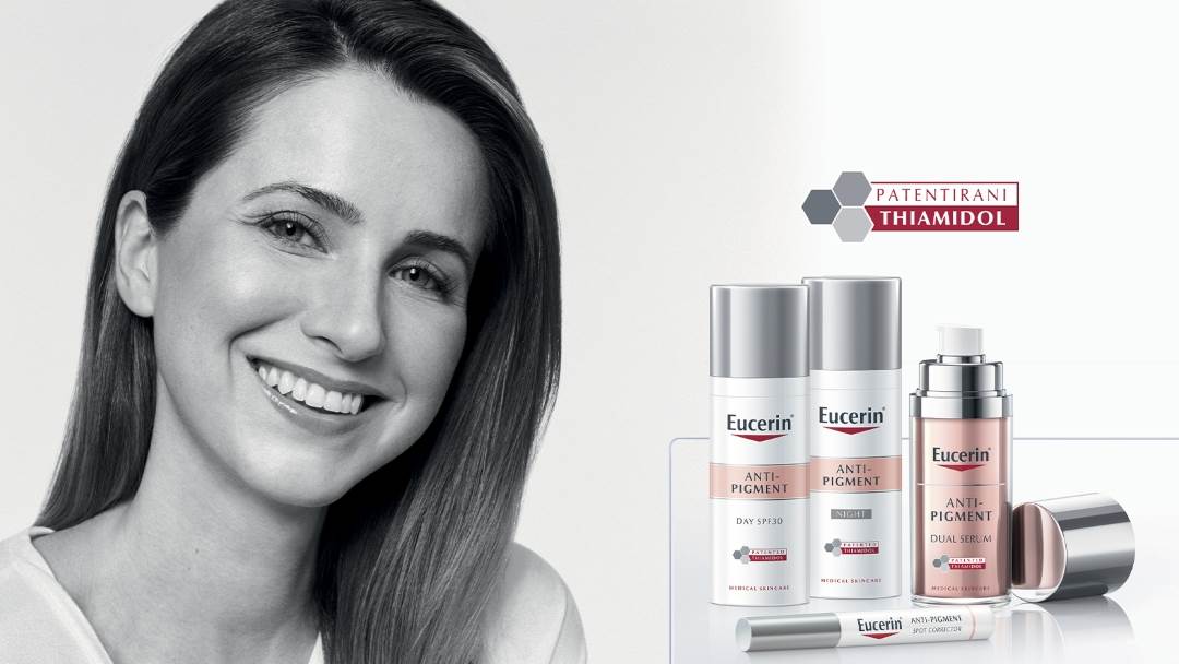 Srećom, hiperpigmetacija se može uspješno riješiti pravilnom njegom! Eucerin Anti-Pigment njega pruža učinkovito rješenje za hiperpigmentaciju smanjujući tamne mrlje i sprječavajući njihovo ponovno pojavljivanje za ujednačeniju i sjajniju kožu. U nastavku donosimo ključne prednosti Eucerin Anti- pigment njege, ali i svjedočanstva mnogih žena koje su imale priliku testirati njegu. Cijela linija - Anti-Pigment dnevna njega, noćna njega, dvofazni serum i korektor za ciljanu primjenu - sadrže Thiamidol, učinkovit i patentiran sastojak koji djeluje na pojavu hiperpigmentacije smanjujući proizvodnju melanina.