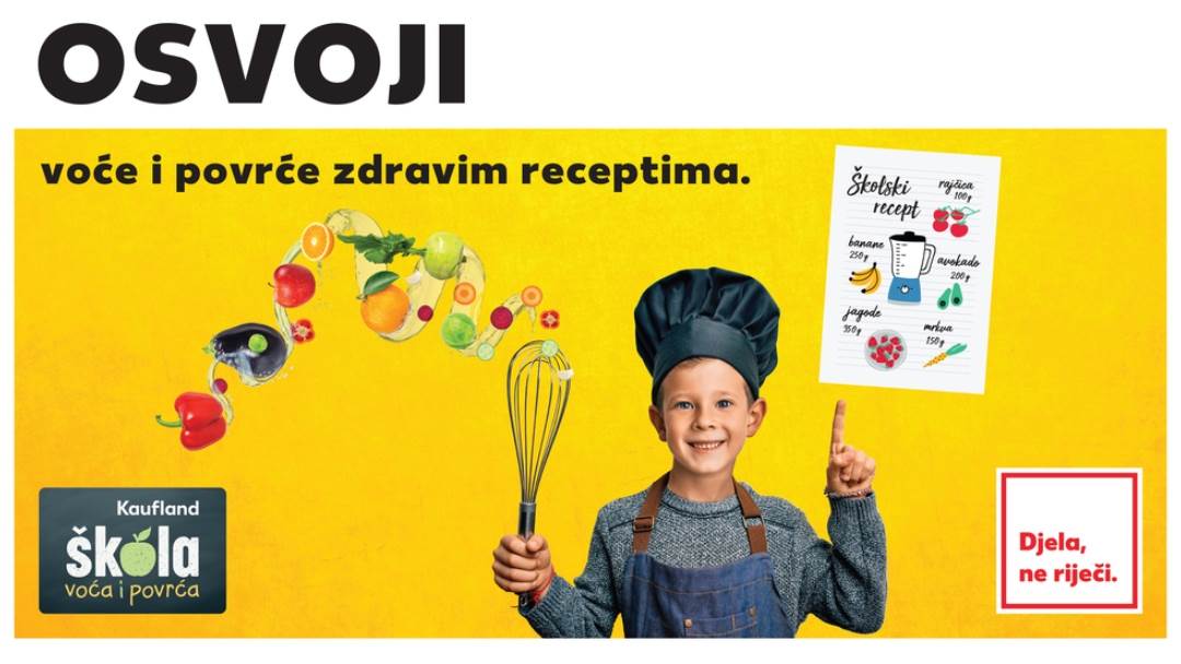 Kroz društveno odgovorni projekt Kaufland škola voća i povrća djeci u osnovnim školama svaki tjedan tijekom cijele školske godine Kaufland Hrvatska k.d. osigurava svježe voće i povrće. Ovaj dugogodišnji projekt, pokrenut još 2017. godine, ima cilj podići svijest o zdravoj prehrani među djecom te osigurati zdrave obroke za školarce. Kako osigurati dodatni zdravi obrok za svoju školu za šk. god. 2022./2023.? Uključite se u kreativni izazov Kauflanda te osvojite godišnju zalihu svježeg voća i povrća za sve učenike škole! Saznajte više i prijavite se na www.kaufland.hr/skolavip do 20.5.2022.!“