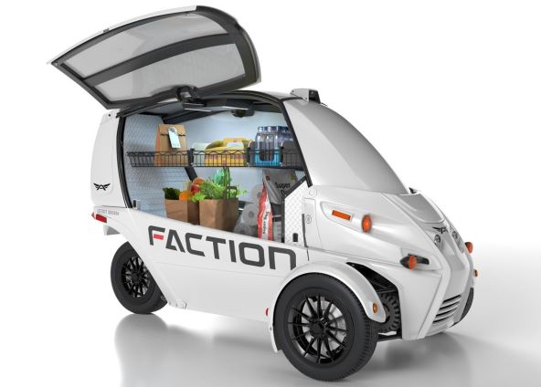 Električno vozilo Faction D1 temelji se na vozilu koje se već koristi za dostavu u SAD-u, a u pozadini je Acrimoto Deliverator, dostavna služba nove generacije namijenjene za lokalne isporuke. Arcimoto se udružio s Faction Technology za pokretanje autonomne vožnje u Silicijskoj dolini.