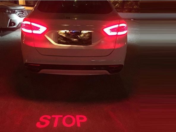 Pritisnete li papučicu kočnice na asfaltu iza vozila ispisat će se slova STOP te će se i na taj način vozaču iza vas ukazati na kočenje i potaknuti njegovu reakciju kočenja. Koristi se laser snage 200 mW te će omogućiti najmanje 10.000 sati rada.