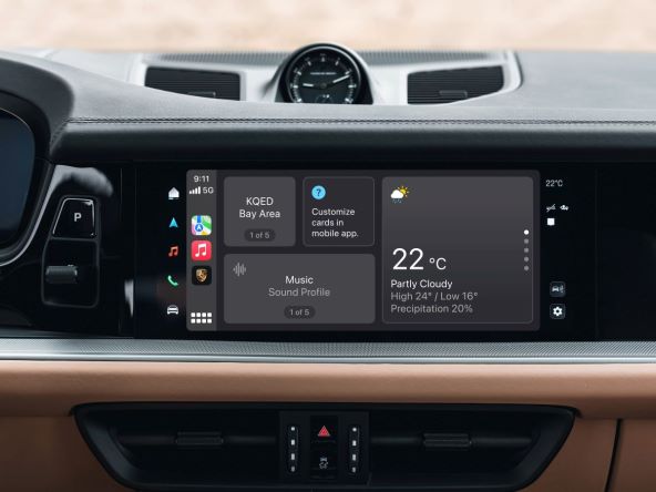 Ažurirana aplikacija My Porsche kombinira funkcije vozila s CarPlay iskustvom uključujući mogućnost prikazivanja slika određenog modela unutar CarPlaya. Osnovne funkcije koje se mogu jednostavno prilagoditi čak i putem aplikacije My Porsche uključuju audio postavke kao što su zvučni profili, mijenjanje radijskih postaja, podešavanje postavki za kontrolu klime i ambijentalnog osvjetljenja.