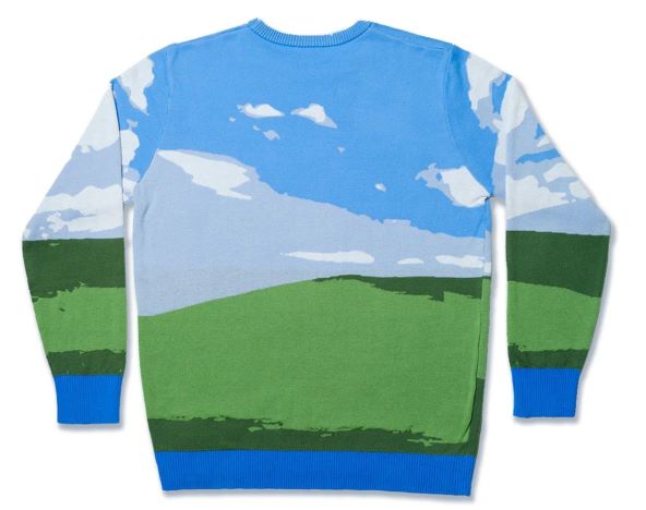 Džemper će biti dobra ideja i za poklon za predstojeće božićne poklone, a ružni sezonski džemper s pozadinom iz svog softvera Windows XP prikazuje legendarnu scenu nazvanu Bliss koja prikazuje valovita zelena brda, plavo nebo i bijele pahuljaste oblake.