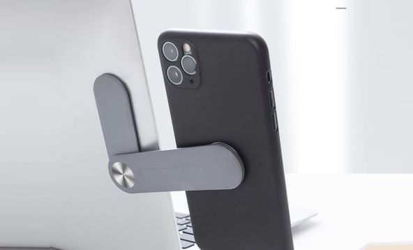 Nabavite bočni nosač koji se postavi na ekran laptopa ili na tablet, a zatim se na taj bočni nosač samo postavi mobitel. Prethodno je na mobitel, na stražnju stranu, potrebno postaviti magnetni držač koji je jako tanak pa ga nećete niti osjetiti u ruci. Ako koristite zaštitnu masku, nećete ga niti vidjeti. I to je to, doslovno.