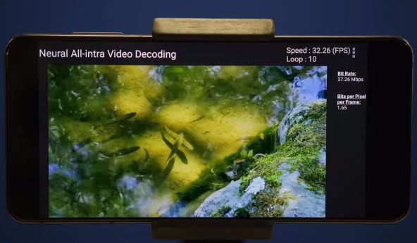 U Qualcommovoj video demonstraciji 1280 x 704 videozapis, koji je vrlo blizu HD 720p, dekodira se brzinom od 30+ sličica u sekundi na komercijalnoj snazi pametnog telefona pomoću procesora Qualcomm Snapdragon 888. Konkretno, paralelno entropijsko dekodiranje radi na CPU-u, a mreža dekodera je ubrzana na 6. generaciji Qualcomm AI Engine.