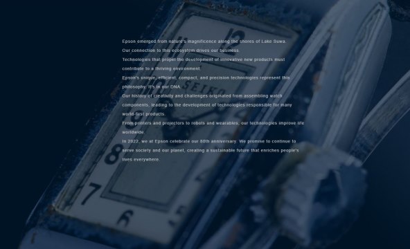 Epson se tijekom osam desetljeća razvijao prenoseći svoje znanje inovatora i proizvođača. Usavršavajući tehnologiju mikro obrade i precizne obrade koju je Epson razvio za satove i njena primjena u drugim područjima je ono što je potaknulo rast tvrtke.