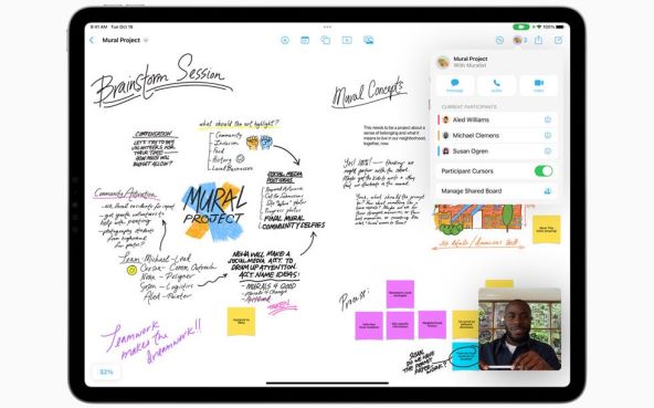 Apple Freeform je savršeno iskustvo bijele ploče za prikupljanje inspiracije i ideja na jednom mjestu. Beskonačno platno se širi kako se sadržaj dodaje na ploču za neograničenu fleksibilnost pri radu s mnogo datoteka ili pri suradnji s drugima. Korisnici se mogu neprimjetno kretati po ploči uz podršku za ugrađene geste.