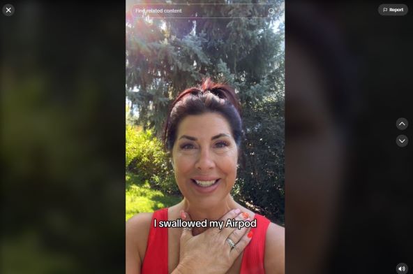 Što je najbolje, Airpods slušalica nije njezina nego suprugova, a slušalicu je uzela u ruku umjesto šake vitamina. Nakon toga svoju je dogodovštinu podijelila u TikTok videu koji se virusno proširio i pregledan je već 2,4 milijuna puta.