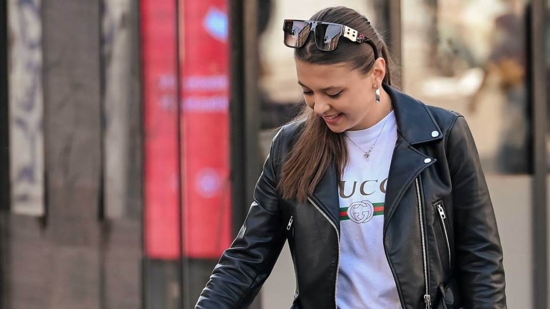 Kratku kožnu jaknu prebacila je preko bijele Guccijeve majice koju je kombinirala s trapericama šireg kroja kakve su jedan od glavnih trendova ove sezone.