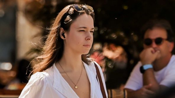 Radi se o oversize bijeloj haljini, popularnog košulja kroja s nabranim donjim dijelom, a kombinirala ju je s jednostavnim natikačama i pletenim cekerom.