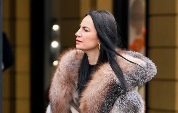 Središnji dio ovog outfit je kaput s bogatim krznenim ovratnikom u neutralnoj boji, koji je cijeloj kombinaciji dao dozu luksuza. Uz njega je nosila jednostavne crne tajice i rukavice u bež boji, a sve je zaokružila torbicom brenda Karl Lagerfeld.