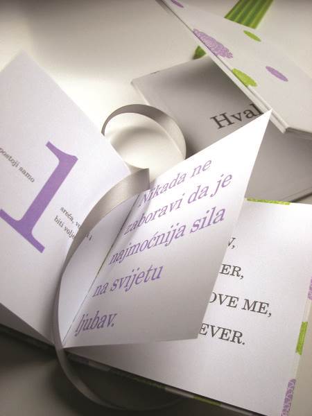 Pozivnica može biti pretočena i u materijale trajnije vrijednosti kao što je vječni kalendar ili knjižica aforizama po izboru zaljubljenog para. Tko ne bi u svojoj biblioteci volio imati zgodnu knjižicu plesnih koraka?