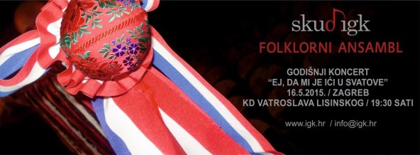 U subotu 16. svibnja, s početkom u 19,30 sati u Koncertnoj dvorani "Vatroslav Lisinski" držat će se koncert hrvatskih svadbenih običaja "Ej, da mi je ići u svatove" u izvedbi folklornog ansambla "Ivan Goran Kovačić".