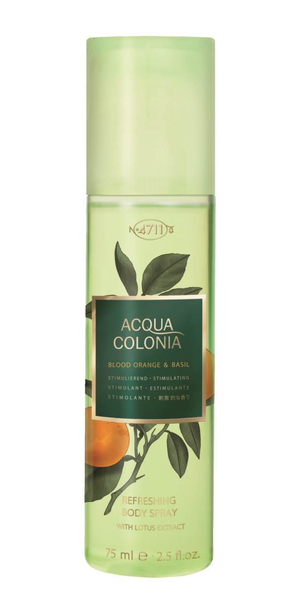 Miris 4711 Acqua Colonia Blood Orange & Basil stimulira i ispunjava ljetne snove te donosi svježu promjenu u ustajalu svakodnevicu. Energizirajuća aroma zrele i egzotične crvene naranče, u kombinaciji s mirisom bosiljka garantira dobro raspoloženje jer aktivira sva osjetila. Ta kolonjska voda za ženu i muškarca ooduševljava i šalje jasnu poruku: “Život jest i uvijek će biti vrijedan življenja.”